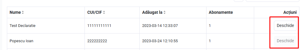 Pentru a schimba firma activă, apasă butonul Deschide din lista de firme.