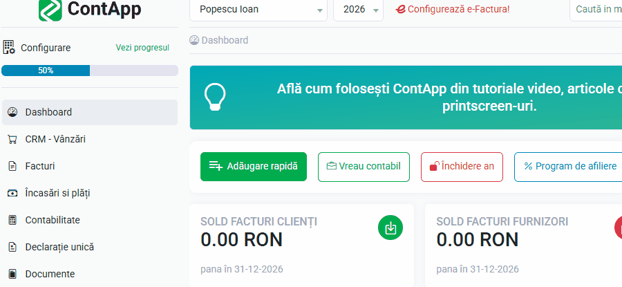 Pentru mai multe detalii despre cum să setezi firma nou creată, vezi articolele din categoria Setări Firmă.