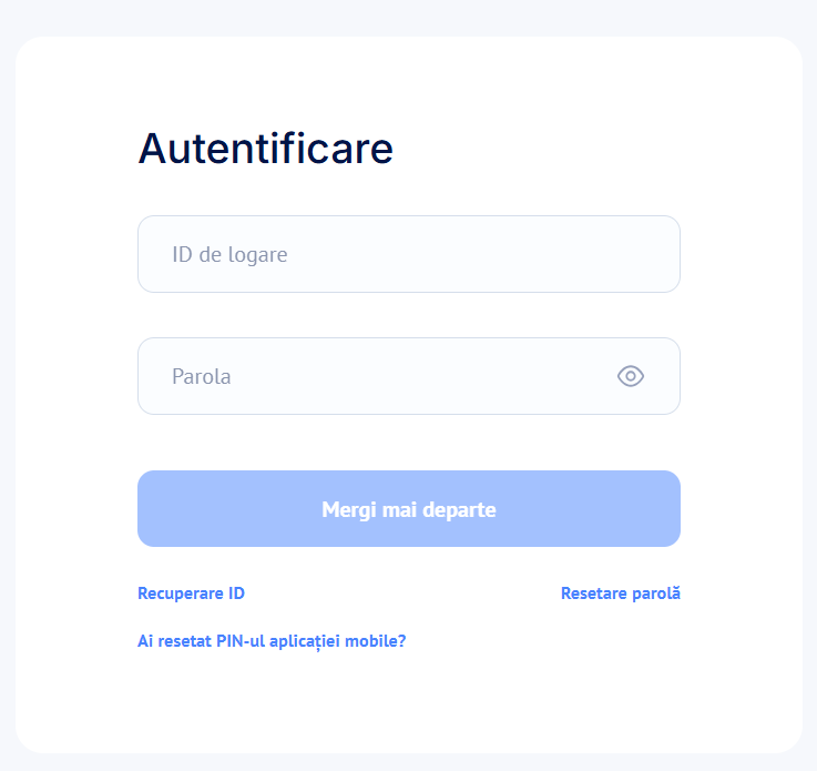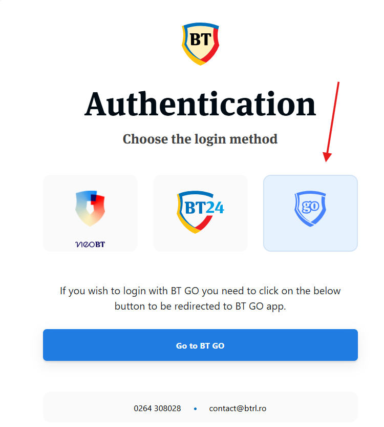 5.Într-o pagină nouă se deschide aplicația BT GO unde introduceți codul de utilizator și parola acestei aplicații.