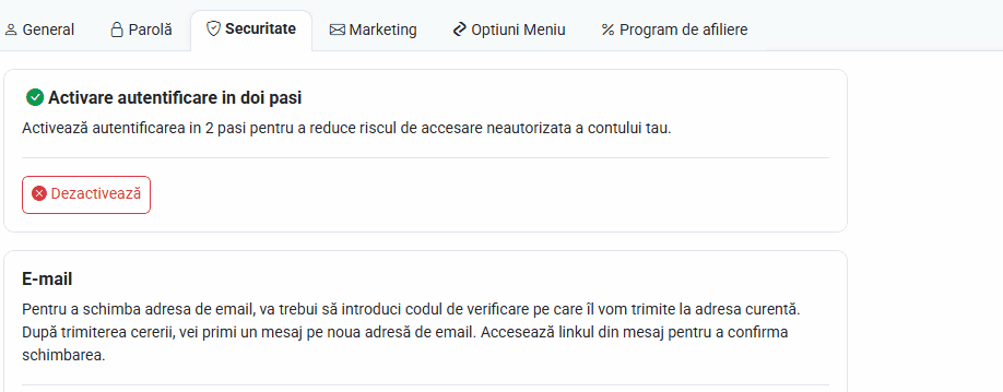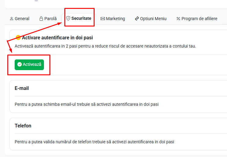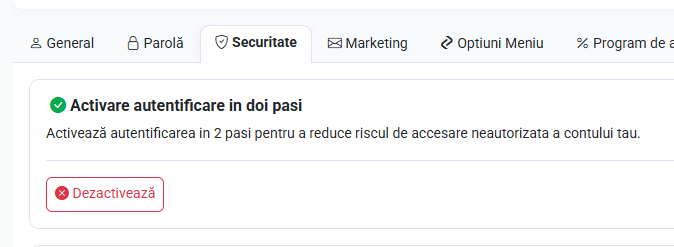 Activare autentificare în doi pași