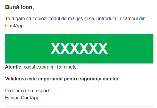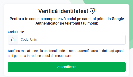 - Verifică emailul asociat contului pentru codul unic trimis.