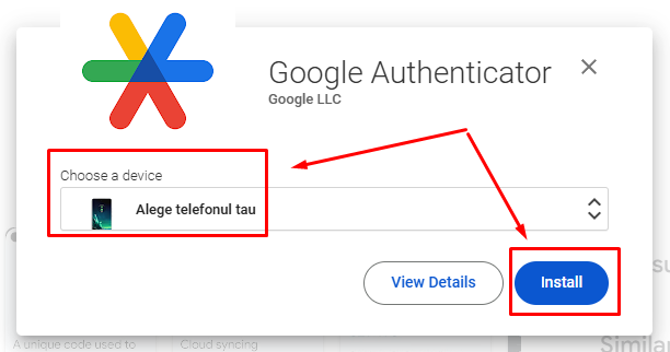 b) Selectează telefonul dorit din lista de telefoane asociate contului Google și confirmă instalarea.