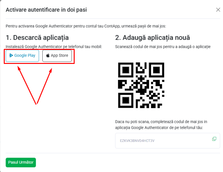Observație: Pentru folosirea Google Authenticator nu este obligatoriu folosirea unui cont.