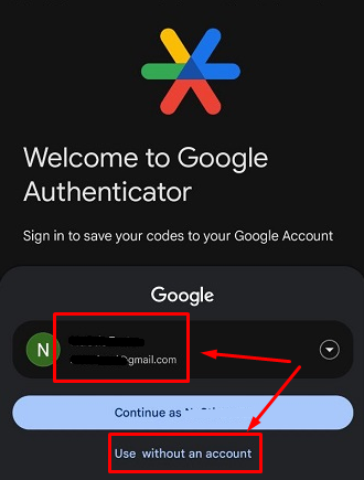 c) Alege un cont sau continuă fără a asocia un cont codului de autentificare.
