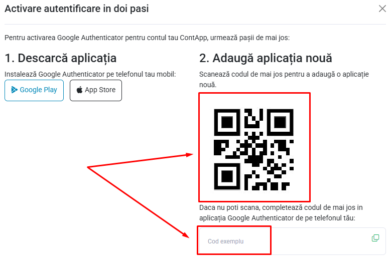 Pentru a reduce riscul de accesare neautorizată a contului tău, în ContApp avem autentificarea în doi pași folosind aplicația Google Authenticator.