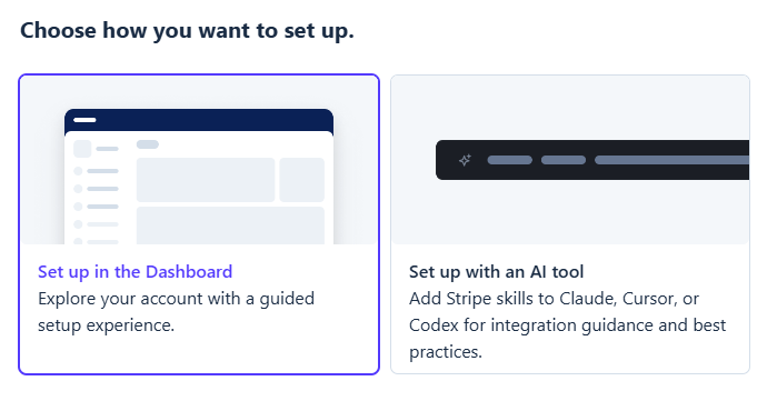 Alege cum dorești să continui procesul de setare firmă, prin dashboard sau cu ajutorul unui AI. În acest articol, o să continuăm cu procesul de verificare prin dashboard.