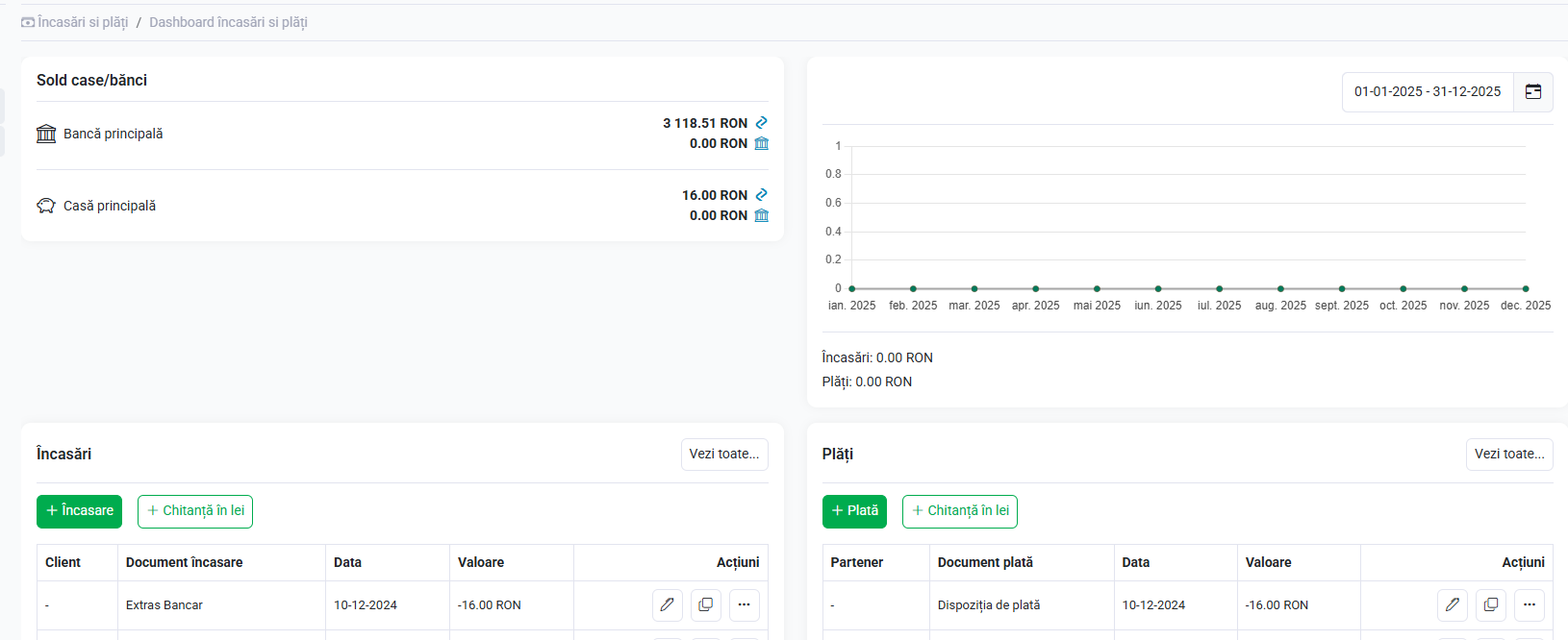 Aici plătești facturile pe care le-ai înregistrat la secțiunea facturi furnizori;