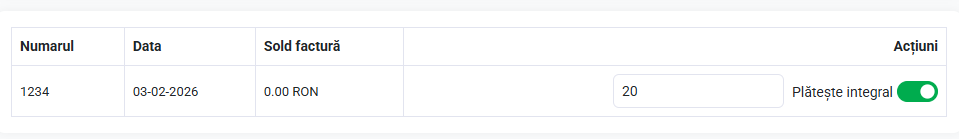 - Plătit in lei - se completează automat cu sumele din etapa anterioară;