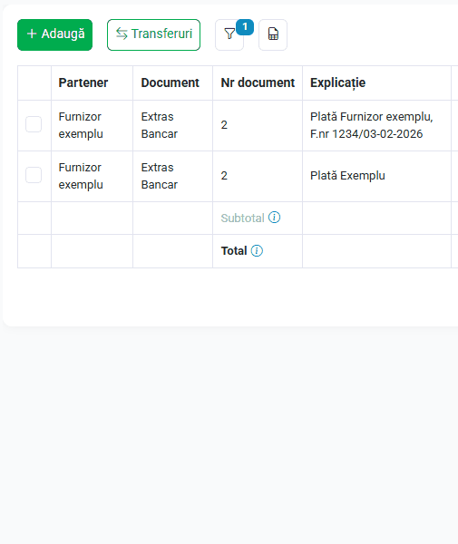 - Furnizor - selectează furnizorul pe care vrei să-l plătești;