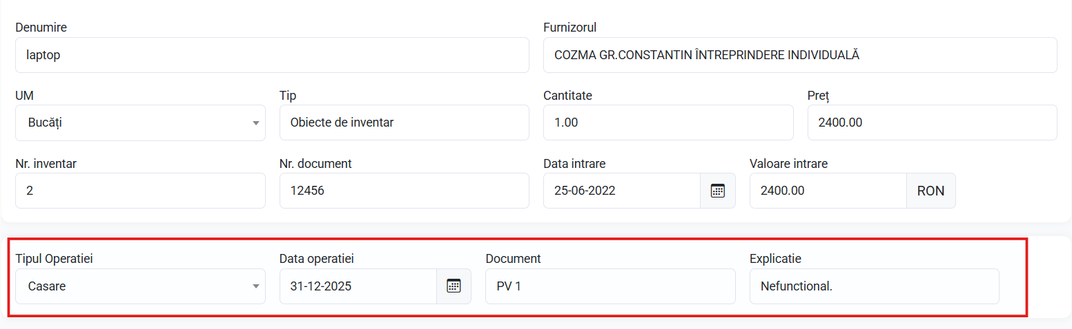 - Descarcă PV casare - descarcă procesul verbal de casare al obiectului de inventar (în format PDF).