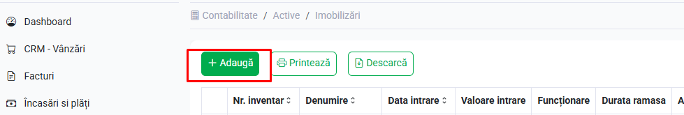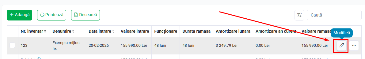 Pentru completare și editare intrări apasă pe butonul Modifică din lista de imobilizări.