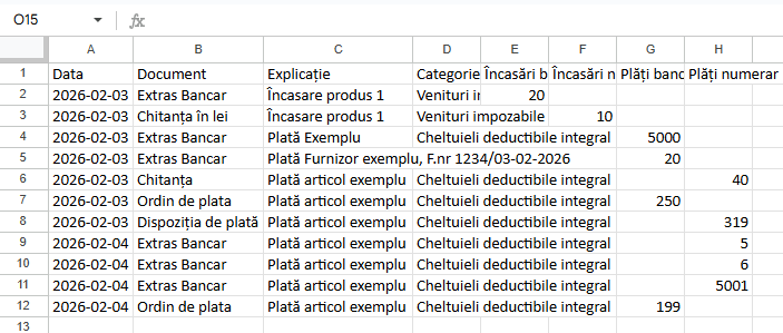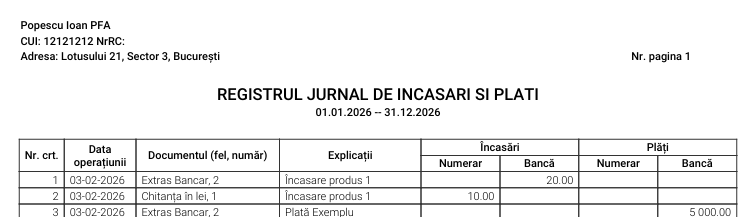 Registrul Jurnal de Încasări și Plăți (RJIP) se generează automat din încasările și plățile înregistrate în secțiunea de încasări și plăți.
